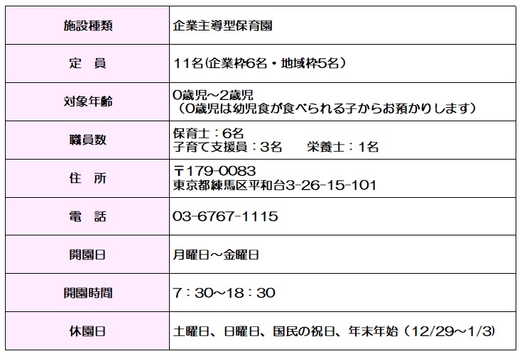 ◎卒園後、不二幼稚園(練馬こども園)に入園希望の方は優先的に入園できます。(入園希望者の人数によりご希望に添えない場合もあります。)