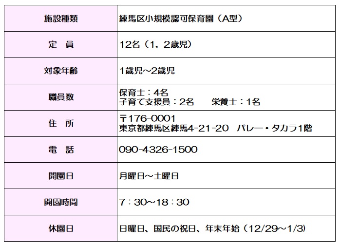 【豊島園いちご保育園】へのお申し込みは【豊島園らる小規模保育園】からお申し込みください。